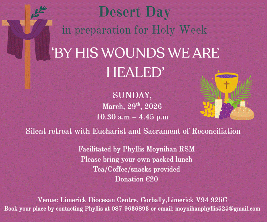 DESERT DAY in preparation for Holy Week. SUNDAY, MARCH 29TH 2026. Silent retreat with Eucharist and Sacrament of Reconciliation